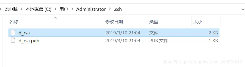 然后应该会有.ssh目录里是有id_rsa和id_rsa.pub这两个文件的