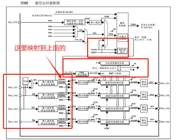 然后我们根据图片,刚刚好TI1FP1和TI2FP2可以到从模式控制器