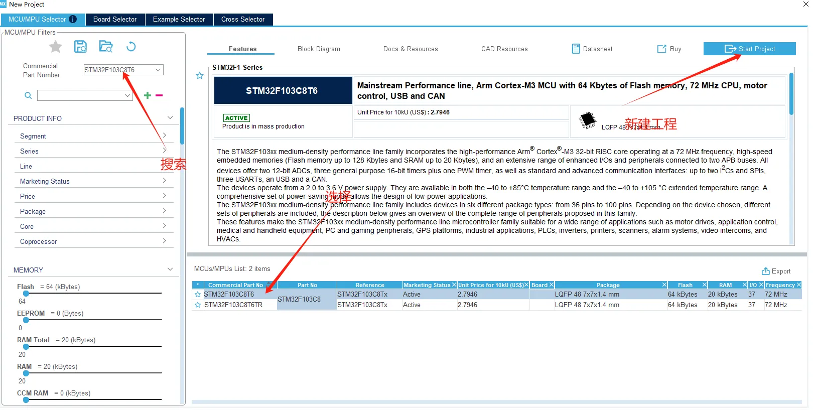 然后点击右上角Start Project来创建芯片