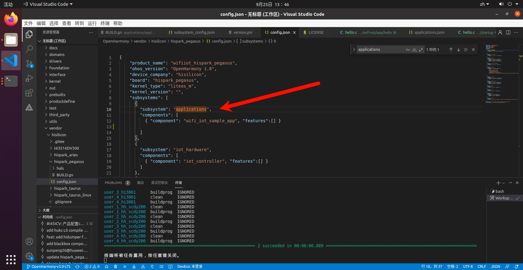 打开//鸿蒙根目录/vendor/hisilicon/hispark_pegasus/config.json