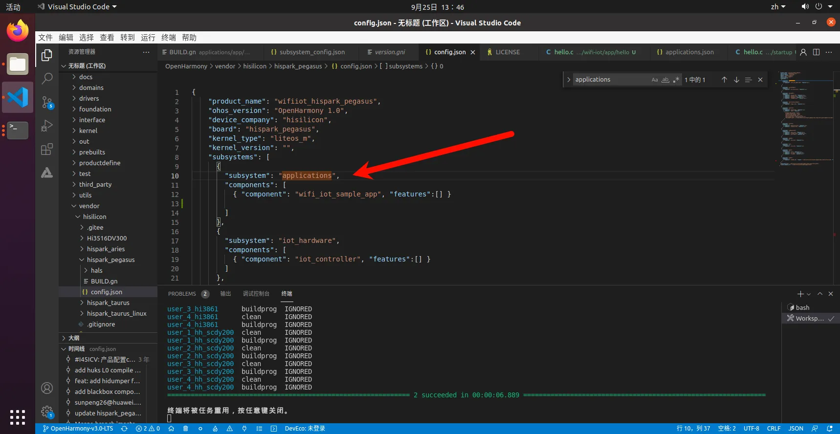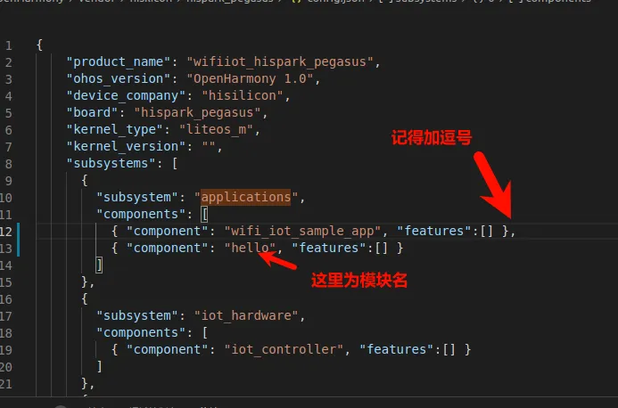 打开//鸿蒙根目录/vendor/hisilicon/hispark_pegasus/config.json