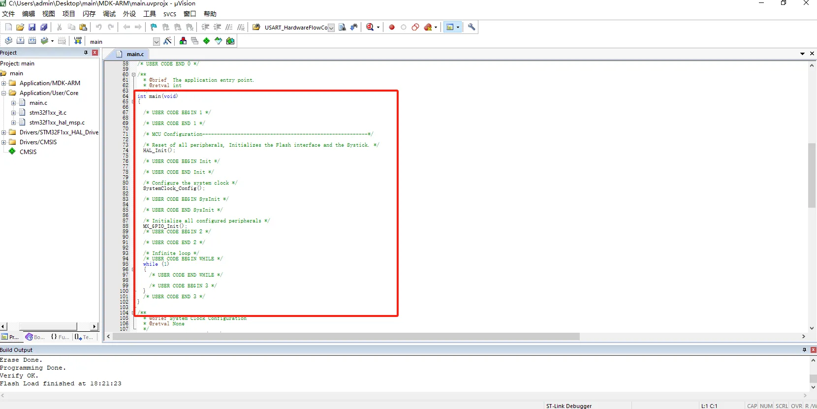 在cubeMX生成的工程中,一定要将代码写在“BEGIN”和“END”中